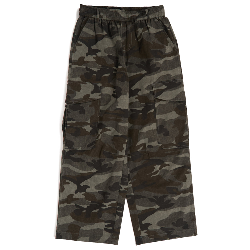 ワイドなシルエットのカモカーゴパンツ。
