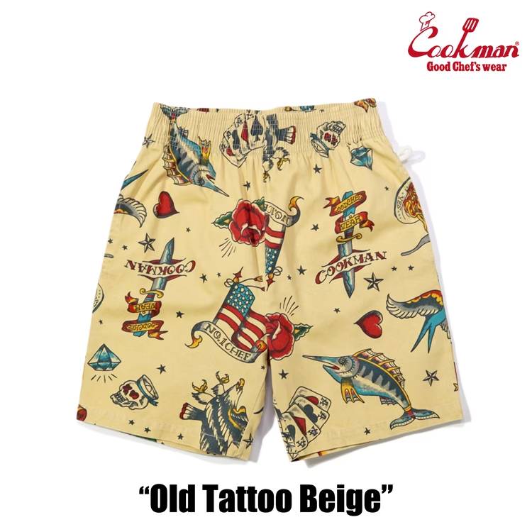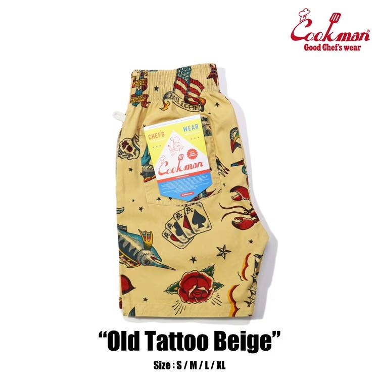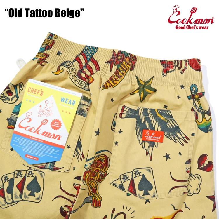 COOKMAN クックマン Short Chef Pants ショート シェフパンツ Old Tattoo Beige オールドタトゥー ベージュ イージーパンツ メンズ レディース 男女兼用 カジュアル